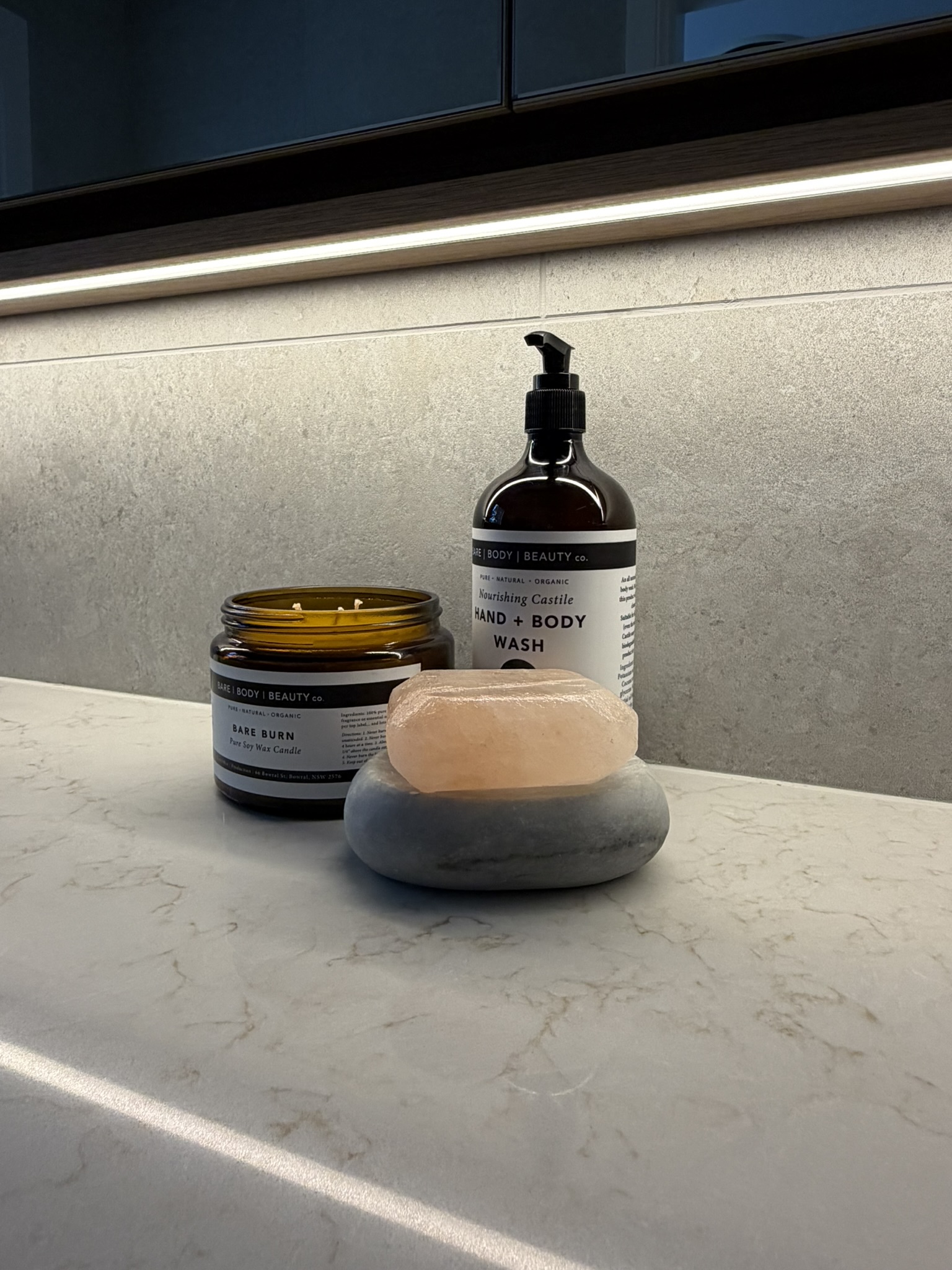 - Layered LED lighting creating warmth and depth