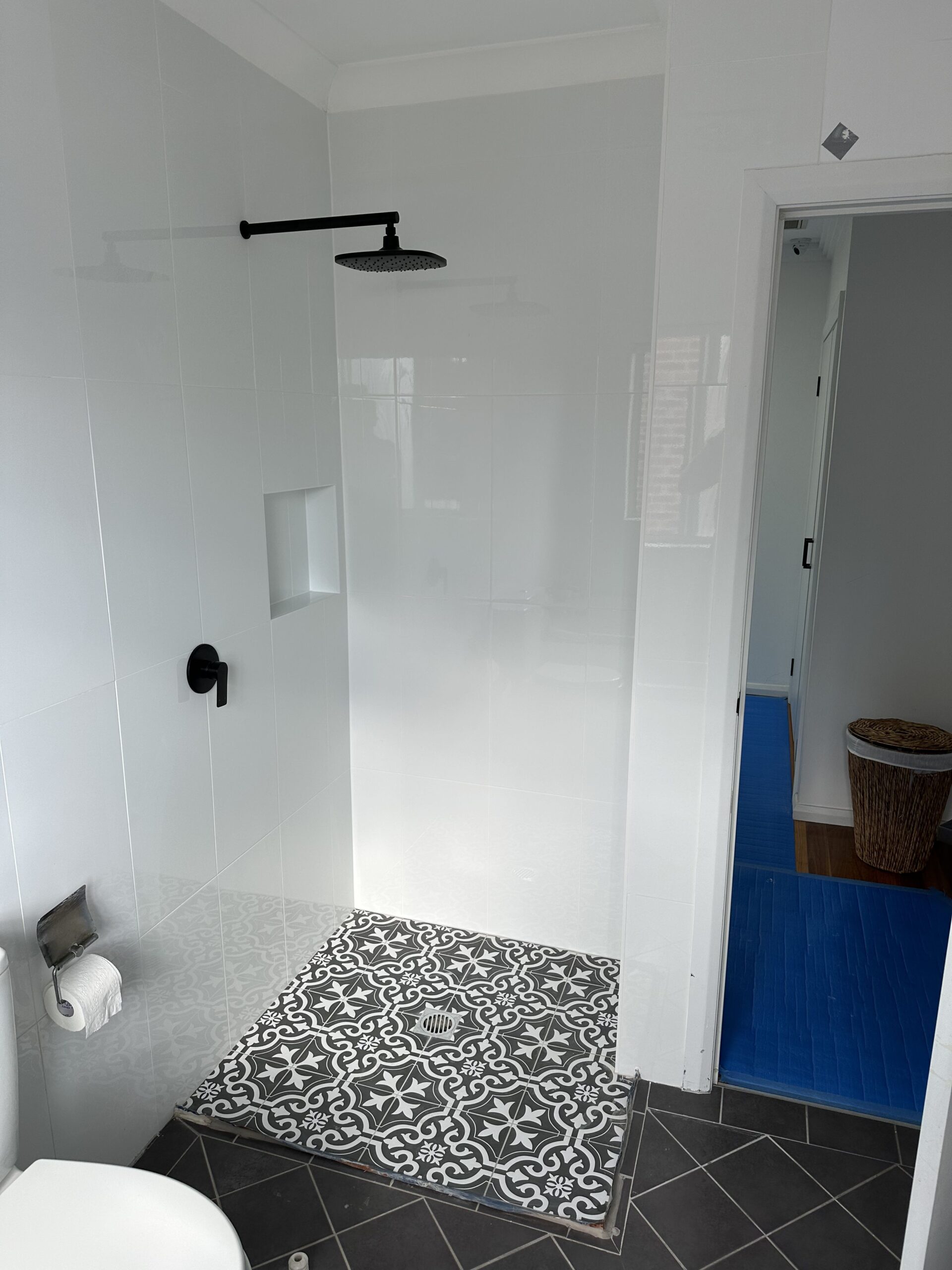 The shower was then finished with new tiles and a frameless shower screen, ensuring both functionality and a clean, updated look.