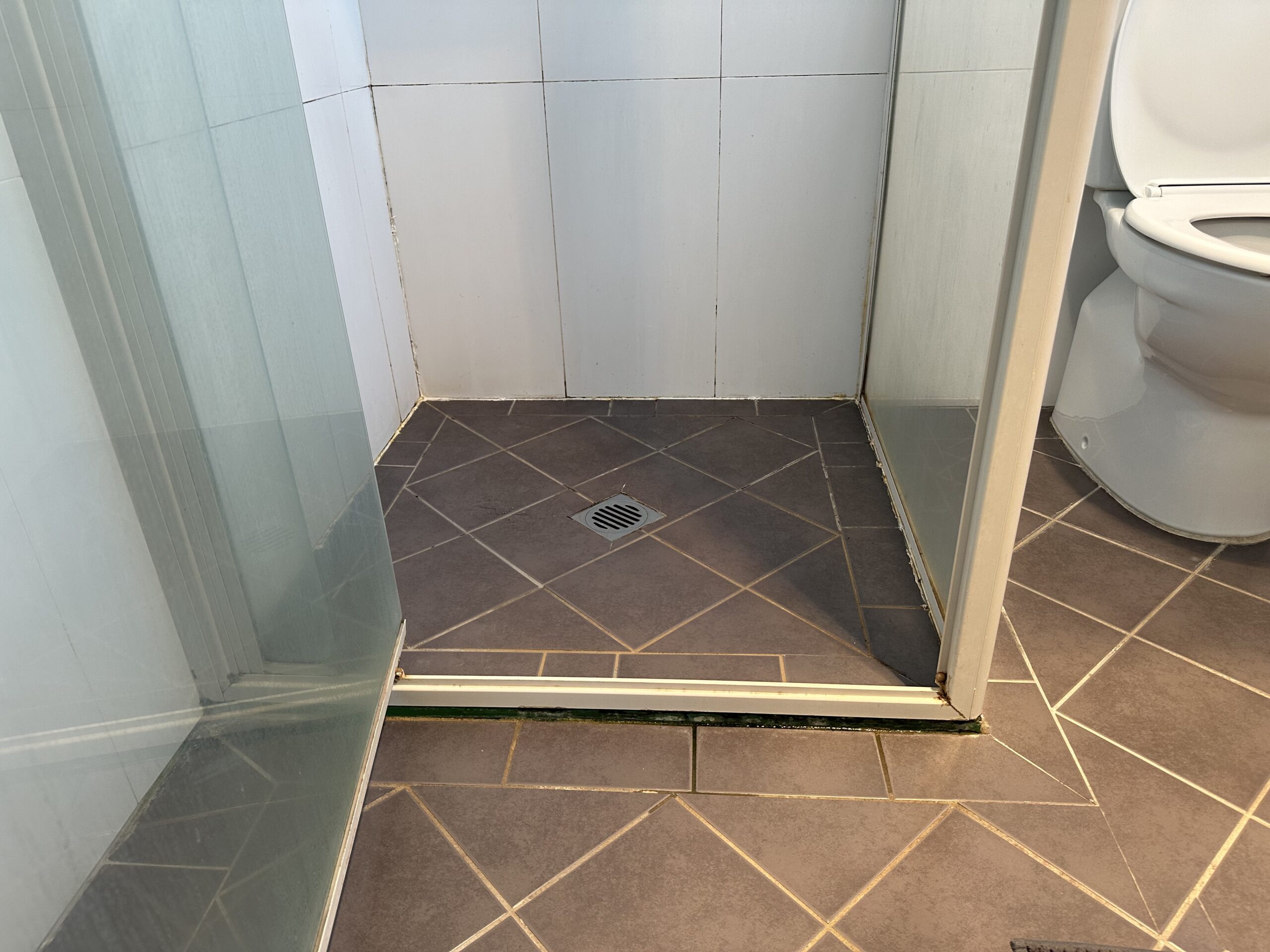 This is often a tell-tale sign that the shower has not been formed correctly. In this case, it was likely that the hob (the raised edge that contains the shower water) was either installed too low or had been compromised during the installation of the tiles or shower screen.